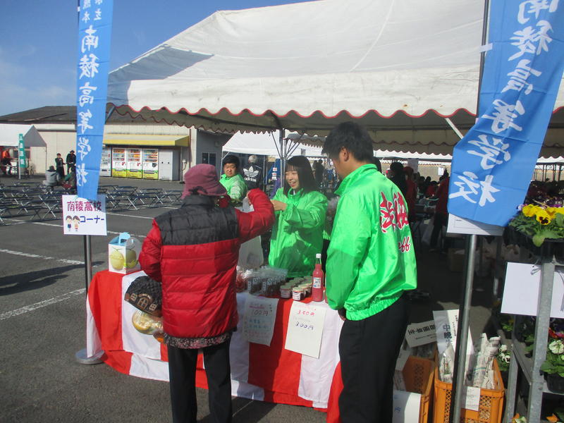 JAくま あさぎり支所 農活祭【農産物販売】 投稿日時 : 2019/11/18 投稿者2 JAくまあさぎり支所「農活祭」で、シクラメン、ポインセチア、メロン、トマト、球磨の初恋、ジャム、古代米などの南稜高校農産物、食品加工品を販売しました。会場は多くの来場者で賑わい、元気な声を出し、明るく販売する生徒の姿は、祭りを盛り上げていました。昼食は、うどん、豚汁、おにぎりを頂きました。お世話になりましたJAの皆様、来場頂いたお客様ありがとうございました。