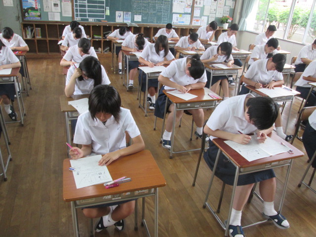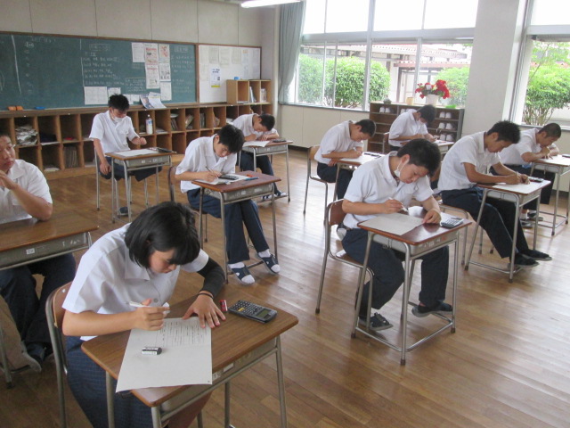 ・1学期 期末考査 1日目 (2017/6/26) 投稿日時 : 2017/06/26 学校サイト管理者 ・1学期 期末考査 1日目 (2017/6/26)本日6月26日(月)から6月30日(金)までが、1学期期末考査です。全校生徒、問題に真剣に取り組んでいます。生活経営科1年は実技試験です。