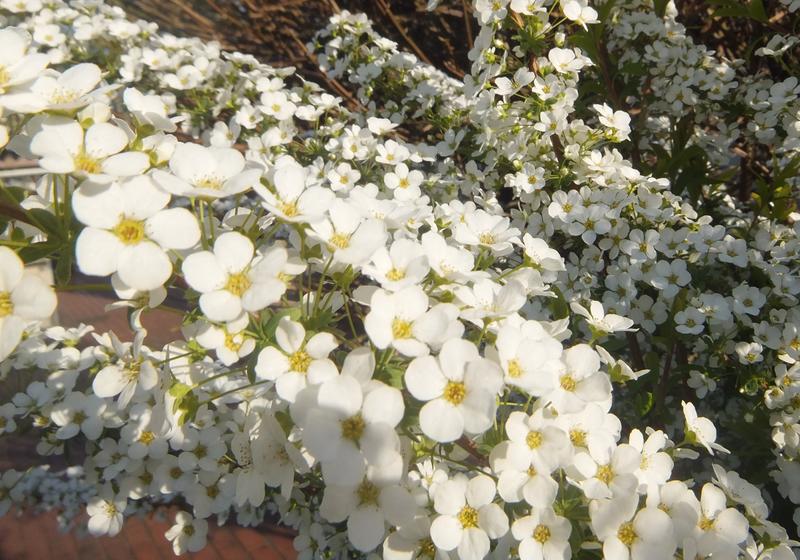 ユキヤナギが雪が降り積もったように小さな白い花を枝いっぱいに咲かせていました。