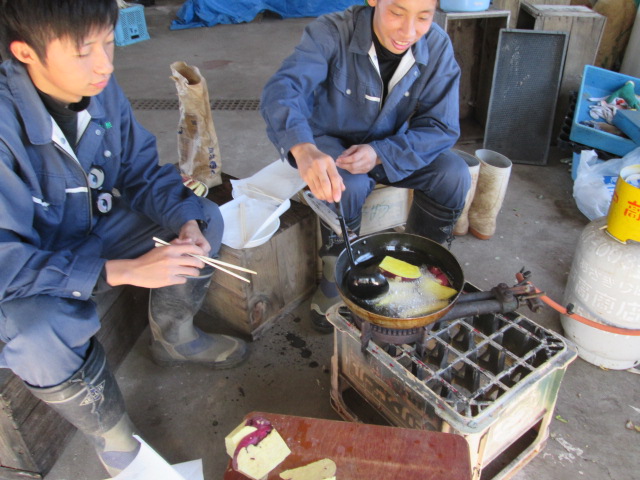 ・生物活用 (2017/10/31) 投稿日時 : 2017/10/31 学校サイト管理者 ・生物活用 (2017/10/31)10月31日(火)生物活用で、収穫したサツマ芋を揚げていただきました。写真は、3年環境工学科の生徒ら。