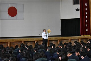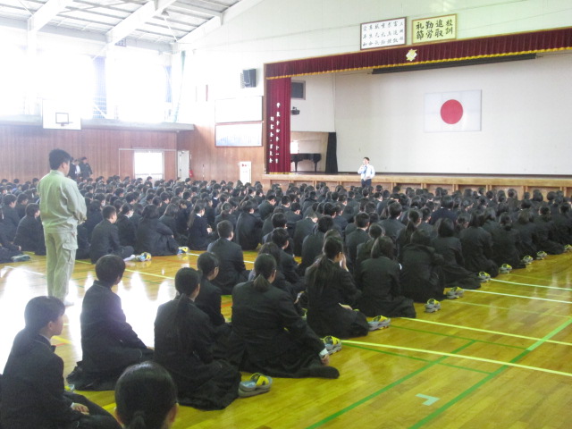 全校朝礼を行い、池田先生から、アプリ導入の趣旨を説明。