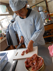 食と命の授業・調理実習 投稿日時 : 2016/11/21 投稿者5 本日3・4限目は、食と命の授業・調理実習を行いました。先週の解体実習でさばいた鶏もも肉、ささみ肉を使いました。【献立】 ・親子どんぶり ・吉野鶏の吸い物 ・ほうれん草のお浸し ・からあげ 自分たちで育てた鶏を解体し、調理して食べることで、改めて命の大切さと食べ物への感謝を実感しました。これからも様々な経験をとおして、頑張ります!
