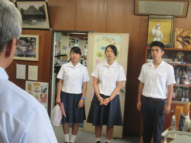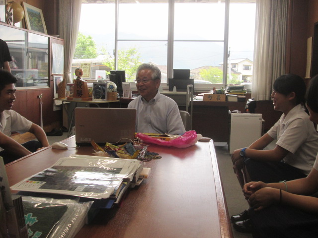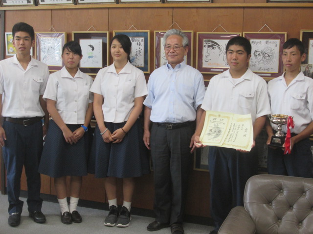 ・同窓会長 報告【馬術部、NICC】 (2017/8/7) 投稿日時 : 2017/08/07 学校サイト管理者 ・同窓会長 報告【馬術部、NICC】 (2017/8/7)8月7日(月)湯前町役場の同窓会長 鶴田湯前町長へ、馬術部の全国大会3位、NICCの研修終了の報告に伺いました。【馬術部】山口主将(球磨中出身)、平根選手(球磨中出身、湯前町在住)【NICC】藤原さん(あさぎり中出身)、吉村さん(錦中)、前田君(あさぎり中)馬術部 全国大会3位報告 山口主将 平根選手(湯前町)NICC報告 左から 吉村さん、藤原さん 前田君NICCの報告をプレゼンテーション鶴田町長を囲んで鶴田町長を囲んで(左から)前田君、吉村さん、藤原さん、鶴田町長、平根君、山口君鶴田会長から大会内容、NICC内容質問など