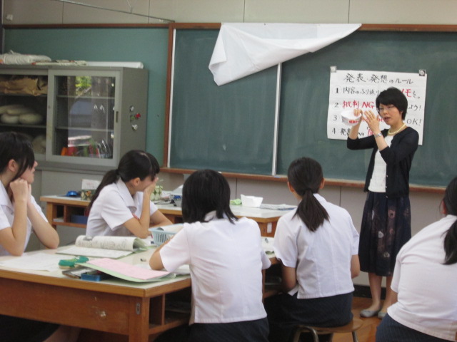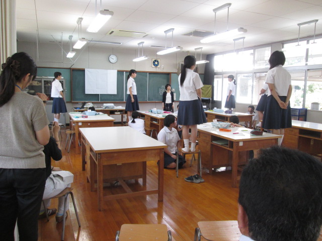 ・南稜高校「知的財産」セミナー 公開授業(1) (2015/9/11) 投稿日時 : 2015/09/11 学校サイト管理者 ・南稜高校「知的財産」セミナー 公開授業(1) (2015/9/11) 9月11日(金)2限目、生活経営科3年生を対象に、「介護実習と生活支援~和綿プロジェクトとのコラボ~」について、西口先生が授業を行い、公開授業としました。講師には、昨日に引き続き、山口大学 陳内秀樹 准教授。他校からも先生方が参観に来られました。