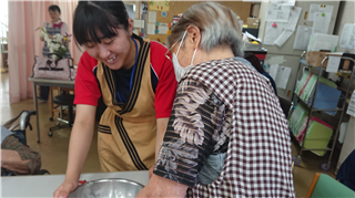始まるまでは不安でいっぱいでしたが、優しく教えてくださる職員の方々に支えられ、楽しく、実りの多い実習となりました。利用者の方々にも孫のようにかわいがっていただき、2日間があっという間に過ぎていきました。