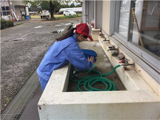 実技試験実施【SPH(5)】 投稿日時 : 2018/11/21 投稿者2 平成30年11月19日(月)20日(火)にSPHで取り組む研究項目5における実技試験を実施しました。今回は最終的な試験ということで、改善箇所を見つけ出した後に、その部分の改善まで行うことを課題としました。1組3人ずつの班を編成し、倉庫→出荷調整室→農薬庫の順で実施。果たして気づきの後の改善は正しかったでしょうか。まずは倉庫内。担当者で状況チェック続いて出荷調整室。このコンテナに残渣発見。どうする???最後に農薬庫。3人で話し合い、よりよい改善策を検討。これを機に気づく意識が備わったかな。