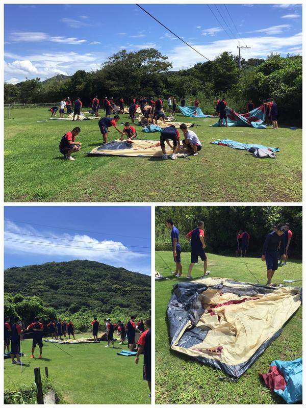 普通科体育コース 野外活動(海浜キャンプ実習 in天草)2 投稿日時 : 2019/09/05 学校サイト管理者 宿泊するテントを班ごとに設営です。 簡易ではありますが、初めて設営する人たちが多く、互いに確認しながら協働で奮闘中。