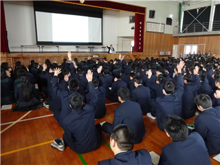 前生徒会長 坂本君が新生徒会長 藤本君にアドバイス。