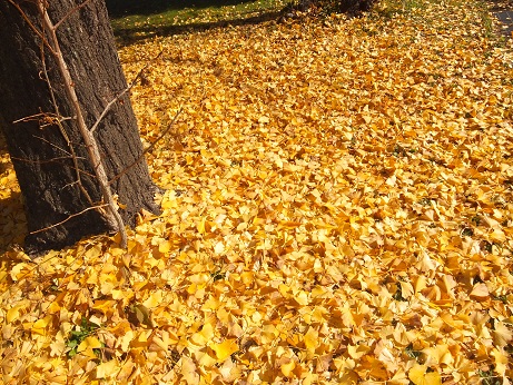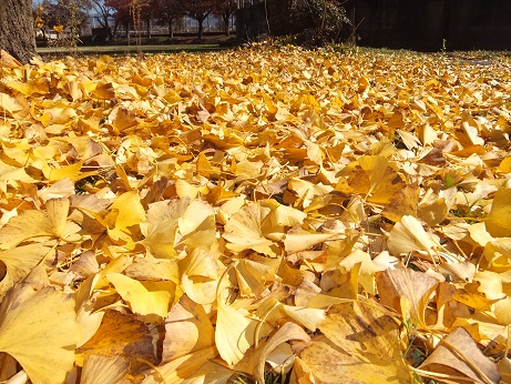 紅葉がすすみ落ち葉が目立つようになってきました。校内には赤や黄色の落ち葉の絨