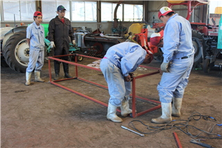 農業機械班は、溶接実習。牛に与える餌を置く台を作成しています。