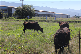 肉用牛班は、神殿原農場で放牧している黒毛和種の転牧(放牧地を変えること)実習で