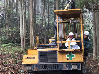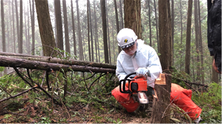 【総合農業科・環境コース】小馬床演習林にて間伐研修 投稿日時 : 2018/12/12 学校サイト管理者 12月11日(火)天気は生憎の雨模様寒さに手がかじかむ中でしたが、総合農業科2年環境コース11名(女子2名、男子9名)元気良く!小馬床演習林での間伐研修を実施して参りました 本研修は、球磨地域林業研究グループや近隣の林業事業者さまの御支援をはじめ、熊本県球磨地域振興局林務課の方々に御協力いただき、毎年実施させていただいております。本日は、次の3点を重点的に学習させていただきました 1 チェーンソーを用いた、立木の安全な伐採方法(受口・追口の作り方) 2 プロセッサを用いた、伐採木の造材作業(枝払い・玉切り・集積) 3 フォワーダを用いた、造材木の運搬作業(前後進の操縦体験・材の積卸し) 南九州横井林業の山田さんによるヒノキの模範伐採では、チェーンソーと楔を巧みに使い熟され、寸分の狂い無く伐り倒される姿に、生徒たちも感銘を受けた様です生徒代表謝辞を務めた、小田君は「今日の研修で学んだことを、今後の授業や実習に生かしていきます!」と、力強く述べていました関係者の皆様、大変充実した研修を誠にありがとうございました。