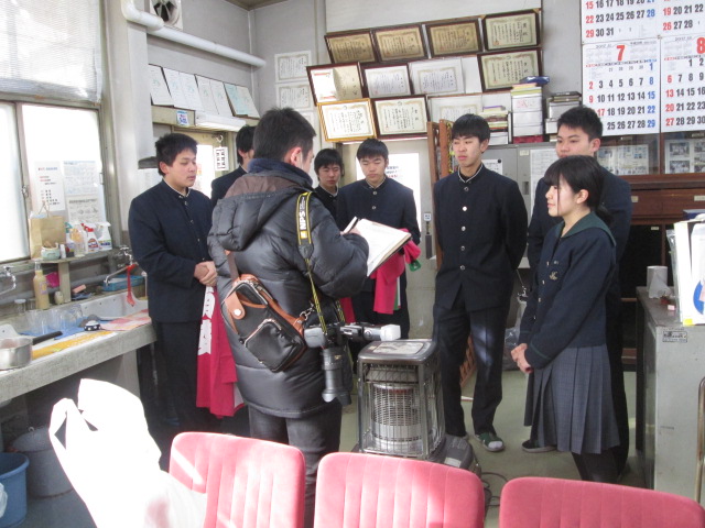 ・「KUMAの初恋」をくま川鉄道社内で販売【SPH(9)】 (2017/2/3) 投稿日時 : 2017/02/03 学校サイト管理者 ・「KUMAの初恋」をくま川鉄道社内で販売【SPH(9)】 (2017/2/3) 2月2日(木)熊日新聞内海記者が取材に来校。食品科学科の模擬会社「WBC」の営業活動の取材です。2月4日(土)人吉温泉駅11時11分発→あさぎり駅11時45分着絵文字:キラキラワンピース絵文字:キラキラがデザインされた観光列車で車内販売をさせていただける事になりました。 試飲も準備し、販売予定は50本限定で価格は1本350円です。 地域の列車とコラボで販売を行います。この機会に観光列車に乗車してみませんか? 熊日新聞 内海記者に 応える 平松社長ら 名刺を交換
