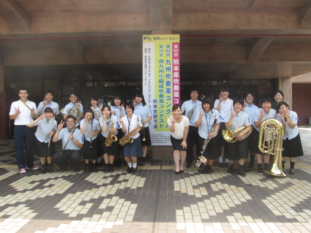 ・熊本県吹奏楽コンクール(2018/7/25) 投稿日時 : 2018/07/25 学校サイト管理者 ・第62回熊本県吹奏楽コンクール(2018/7/25)7月25日(水)熊本県立劇場で第62回熊本県吹奏楽コンクール行われました。南稜高校からBパートに出場、自由曲「いつも風 巡り会う空」、課題曲A「カジュアル・マーチ」を演奏。念願だった銀賞をいただきました。指揮:嶋﨑先生。上原、板崎、高野、伊藤、今村、酒井、高木、綱木、恒松、西、野田、濱田、原口、早田、犬童、下津、深水、山本さんら。有田先生、金子先生も。