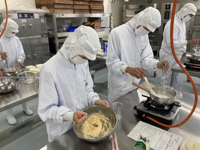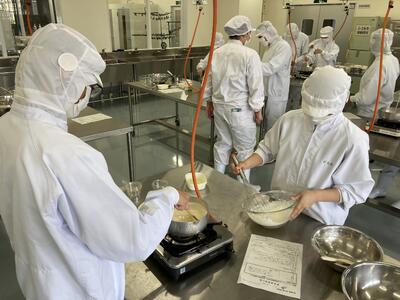 【食品科学科2年生】9.17アイスクリーム製造実習 投稿日時 : 2024/09/17 承認者 まだまだ暑い日が続いてますので、本日5、6限目は食品製造の授業にて持ち帰り用アイスクリームの製造実習を行いました 班員で協力して温度管理やフリージング工程を行いました さすが2F最後の片付けまで一致団結して取り組みました タグ 食品科学科