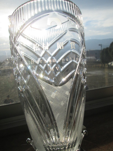 チャリティー馬術大会1日目【馬術部】 投稿日時 : 2018/12/08 学校サイト管理者 12月8日・9日の2日間、本校でチャリティー馬術大会が開催されます。今日はその1日目です。大会前に、本年度から創設された松村杯の授賞式が行われ、第1回の受賞を全国大会準優勝した本校が受賞しました。また、授賞式の後にアジア大会で金メダルを受賞した平永選手が大会報告を行いました。本日の競技は4種目あり、各競技熱戦が繰り広げられ、本校生と職員も優勝するなどの好成治めました。平永選手のアジア大会報告取材をうける平永選手コース下見平永選手 圧巻の走り 疾風怒濤平永選手はもちろん優勝物販も行いました各団体から馬を持参します(=自馬)今年から「松村昭賞」が制定されました。第1回の受賞は南稜高校です。あさぎり町 愛甲町長 来賓あいさつ保護者会 後援会 で 炊き出し 1日目はカレーです勝ち馬を予想します
