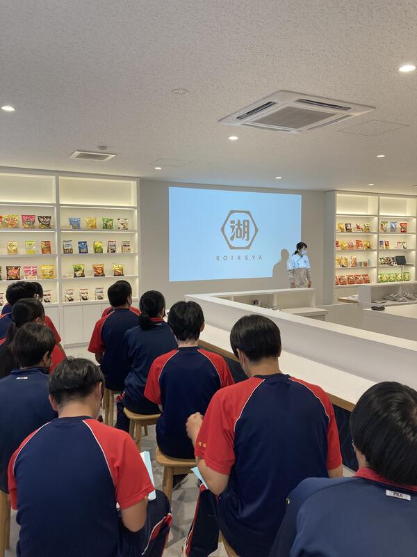 9月8日(木)に食品科学科2年生24名と職員3名で益城町にある株式会社「湖池屋」九州阿蘇工場へ企業見学へ行きました。実際の現場にて職務や衛生・品質管理を肌で感じ、学校では学べない様々なことを学ぶことができました。コロナ禍でありながら快く見学を受け入れていただいた「湖池屋」の皆様に大変感謝します。生徒たちが生き生きと学ぶ、当日の様子をぜひご覧ください。