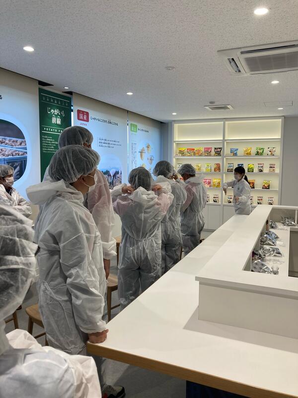 続いて2班にわかれ、工場内見学とマイポテチ体験をさせていただきました。