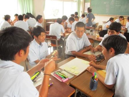 球磨農林学授業風景(総合農業科2年植物コース) 投稿日時 : 2018/09/11 投稿者2 総合農業科2年植物コースの「球磨農林学」は、球磨の農産物のブランディングについて学習しています。本日は「熊本県(球磨地域)の農産物をもっと全国、世界中の人に知ってもらうにはどうしたらよいか?」というテーマのもとKJ法でそれぞれの意見を出し合いました。今後各班で企画書を作成し、ブランド化に向けたアイディアのプレゼンを行います。