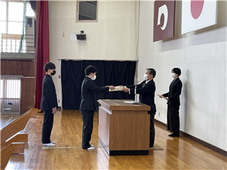 修了式表彰式 投稿日時 : 2021/03/24 投稿者5 本日、体育館にて表彰式を執り行いました。 3学期の各活動での成果や、皆勤賞が表彰されました。 表彰者一覧はこちらから → 修了式表彰者一覧.pdf 皆勤賞一覧.pdf