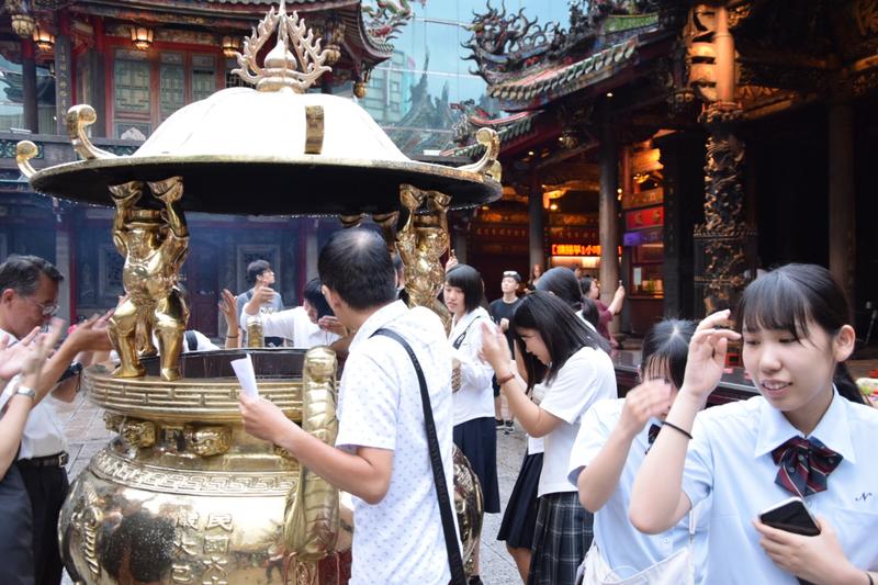 街中に突如立たずむお寺。地元の方が多く訪れ参拝をお祈りをされていました。台湾の文化にも触れることができました。