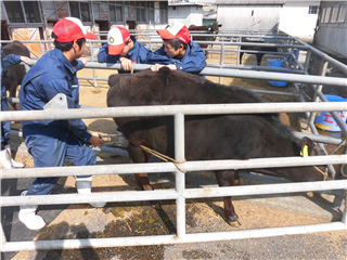 3,4限目は1年生産科学科園芸科学科1組が「肉用牛の去勢」を学習しました。先日、2年生が実施した