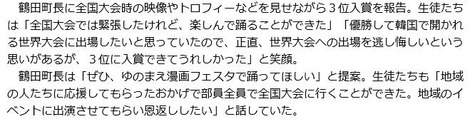 ・ダンス部 同窓会長表敬 (2018/6/9) 投稿日時 : 2018/06/14 学校サイト管理者 ・ダンス部 同窓会長表敬 (2018/6/9)6月9日(土)の人吉新聞に、ダンス部が鶴田同窓会長を表敬した記事が掲載されました。全国大会3位の報告を行いました。