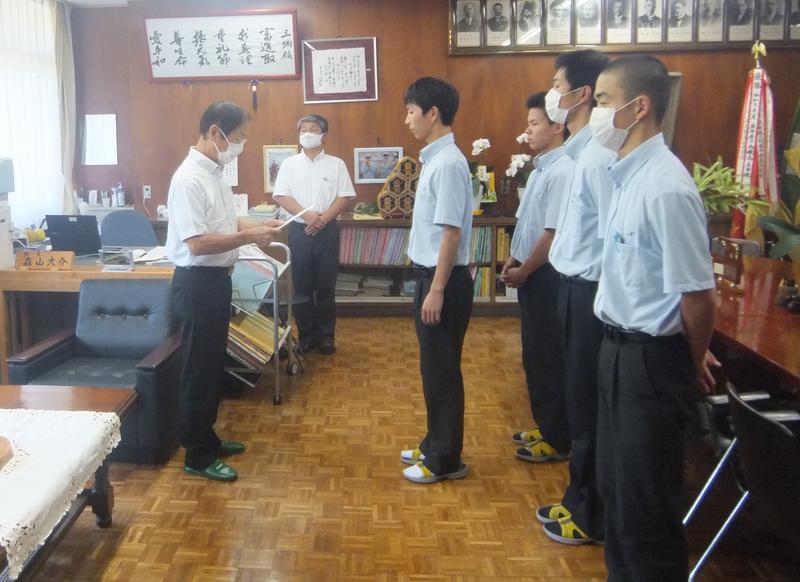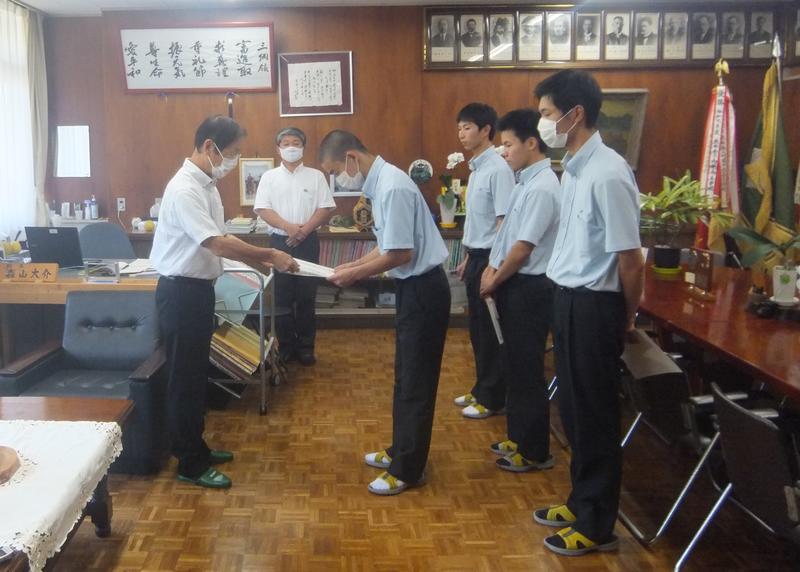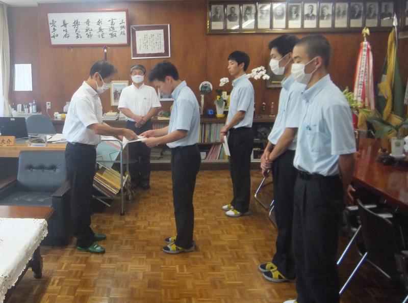 球磨林業奨学会 上半期奨学金交付式 投稿日時 : 2020/08/01 学校サイト管理者 7月31日(金)球磨林業奨学会奨学金交付式を行いました。総合農業科林業コースの3年生4名に奨学金が交付されました。会長から奨学金を交付していただき、生徒一人一人もお礼の挨拶を述べました。 長年に渡ってご支援いただき心よりお礼申し上げます。