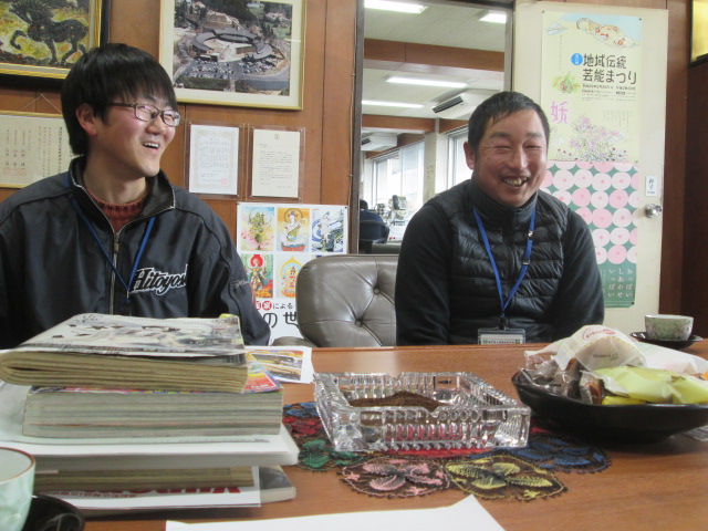 ・馬術 オーストラリア派遣研修報告 同窓会長へ (2018/1/29) 投稿日時 : 2018/01/29 学校サイト管理者 ・馬術 オーストラリア派遣研修報告 同窓会長へ (2018/1/29)1月29日(月)馬術部 環境工学科3年の山口君が、オーストラリア派遣研修報告として、鶴田正己会長へ報告に行きました。湯前町役場の町長室で報告。その後、里宮神社へ会長らと参拝しました。里宮神社には、城所ケイジ(チェーンソーアート 世界チャンピオン)のつくられた馬の木彫などを祭ってありました。鶴田会長へ オーストラリア土産を渡す山口君が、研修内容を説明湯前町 広報担当 姫野さん(左)の取材湯前町長室にて里宮神社 城所ケイジ 氏 のチェーンソーアート