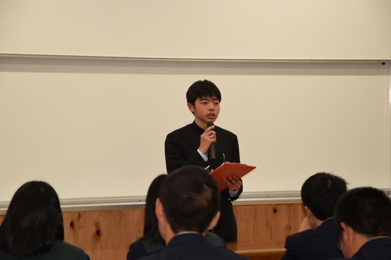 在校生代表挨拶の酒井君。
