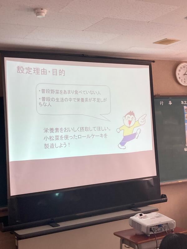 発表順13番 川辺さん 高瀬さん「小松菜ロールケーキ」