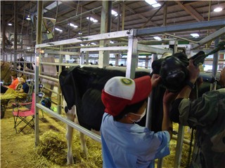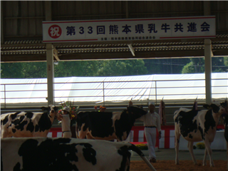 神殿原農場通信~どうぶつだよりNo5~ 投稿日時 : 2014/10/30 作成者1 10月25日(土)~26日(日)菊池郡大津町にある県家畜市場にて、「第33回熊本県乳牛共進会」が行われ、本校神殿原農場で飼育しているホルスタイン種2頭を出品しました。 25日(土)に会場へ到着し、さっそく牛の体を洗い流し、体をきれいに仕上げます。 その後、牛の毛をきれいに刈り、更に美しく見えるように整えていきます。その夜は交代制で牛の世話をしながら、26日(日)の本番に臨みます。 目標の上位入賞こそ出来ませんでしたが、県内の酪農家さんと共に競いながら出場した経験を、これからの活動へつなげていきたいです。 最後に、本校の卒業生である林田さん(あさぎり町上)と経産牛の部リザーブチャンピオン(全体で2位)牛とともに記念撮影。