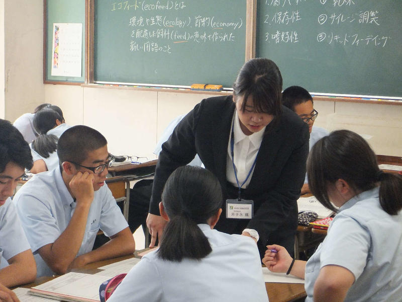 教育実習研究授業 投稿日時 : 2019/06/14 学校サイト管理者 6月13日6限目に井手永教育実習生の研究授業が行われました。緊張した様子でしたがエコフィードについてしっかり教えることができました。生徒たちもよく理解できたようでした。現在、3名の実習生が教育実習に励んでいますが、明日で2名は2週間の実習を終えます。今回の実習での学びを今後に生かしてください。 タグ 食品科学科