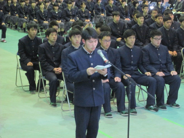 ・同窓会入会式 (2017/02/28) 投稿日時 : 2017/02/28 学校サイト管理者 ・同窓会入会式 (2017/02/28)2月28日(火)同窓会 鶴田正己会長をはじめ役員ご出席の下、同窓会入会式を挙行しました。農業クラブ会長 3年生産科学科 倉本君が入会の言葉を述べました。