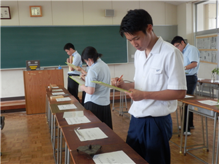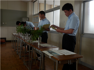 校内農業鑑定競技会予選会」実施 投稿日時 : 2018/06/06 投稿者3 「校内農業鑑定競技会予選会」実施 総合農業科1年45人、総合農業科2年環境コース13人、環境工学科3年8人(農業土木コース1人、林業コース7人)が区分(農業土木の部、森林の部)に別れ、校内農業鑑定競技会予選会を実施しました。 この農業鑑定競技は、普段の学習の成果を発揮する競技会です。みんな真剣に解答していました。 この中の成績上位者が県大会への出場権を獲得します。「農業土木の部」の様子「森林の部」の様子