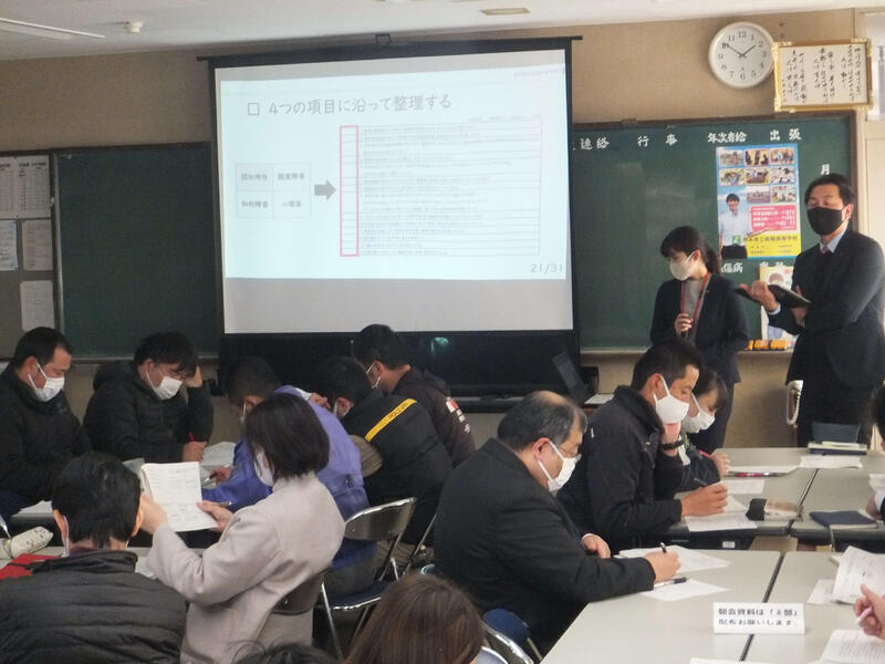 職員研修 投稿日時 : 2022/01/07 学校サイト管理者 1月7日、球磨支援学校から2名の先生をお招きして、特別支援教育研修を行いました。 生徒の実態を整理して考え、それから考えられる背景を検討し、手立てと連携させるための手法等を学びました。 改めて、生徒一人一人の実態にあわせた指導方法について、考えさせていただく機会になりました。