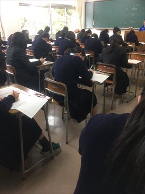 中間考査始まる! 投稿日時 : 2017/05/16 学校サイト管理者 今年度最初の定期考査(中間考査)が本日から始まりました。19(金)まで。問題と真剣に向き合い、日頃の学習の成果を発揮しています。写真は、1年生「現代社会」の考査風景です。