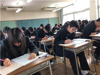 農業技術検定が行われました 投稿日時 : 2018/12/08 投稿者2 12月8日(土)10:00~本校にて、農業技術検定試験が行われ、2年総合農業科植物コースの生徒40名が受験しました。試験開始ぎりぎりまで机に向かい勉強し、いざ本番。試験時間の40分間真剣に問題に向き合いました。結果が楽しみですね。