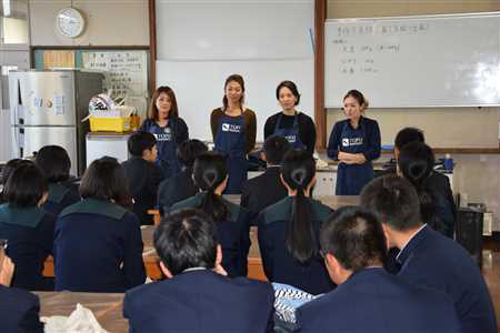 第3回ダイズ100粒運動 投稿日時 : 2018/11/30 学校サイト管理者 11月30日(金)、ダイズ100粒運動の第3回を実施しました。はじめに豆腐作りをしました。ダイズとお湯をミキサーにかけ、それを絞り豆乳とおからに分けます。鍋で熱した後にタイミングを見計らって豆乳ににがりを投入(笑)!少し待つとよせ豆腐の完成です。その後型によせ豆腐を入れて水を切ると、木綿豆腐の完成!できたてを美味しく頂きました。ダイズ本来の甘みを感じながら、少し塩をかけると更に美味しく食べることができました。 その後、油揚げを作りました。一般的に食べる豆腐よりも薄い豆乳濃度の豆腐を油で揚げると、何倍にも膨れあがりました。そして揚げたてを一口食べると、油揚げの概念が変わる程感動の味でした。予想外に膨れた為「こんなに食べれるかな?」と話をしていましたが、あっという間に完食でした。 本日も講師としてご指導いただいた(株)お豆腐湯葉料理 大豆の華 北野集様、(有)くすもと食品 北野広様、(有)島原食品 尾﨑様、(有)尾﨑食品 植木様、親父のガンコ豆腐牧野様をはじめご協力いただいた皆様、ありがとうございました。