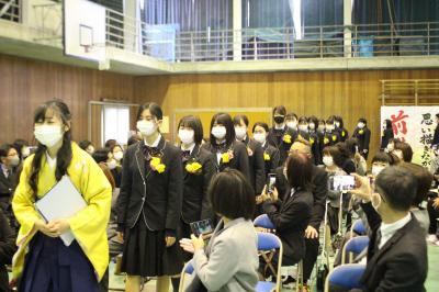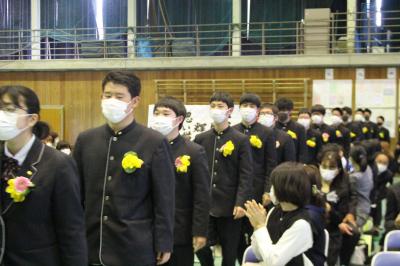 本日、暖かな日差しのもと、卒業証書授与式が行われ、総数122名の生徒が新たな道へと旅立ちました。