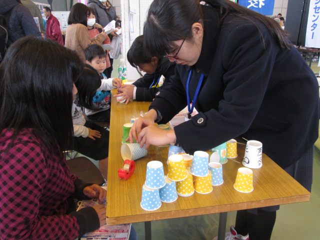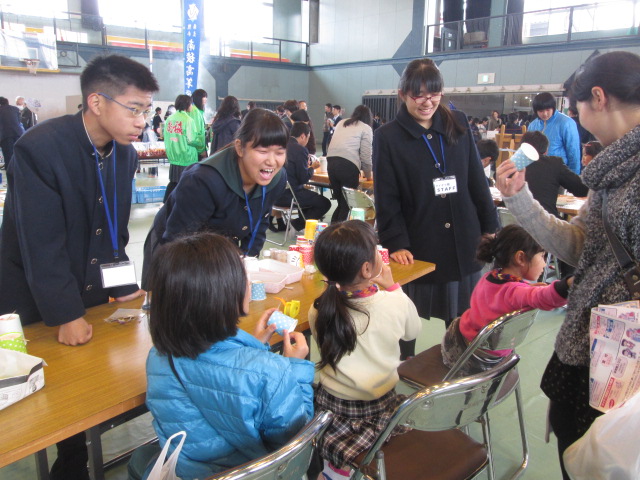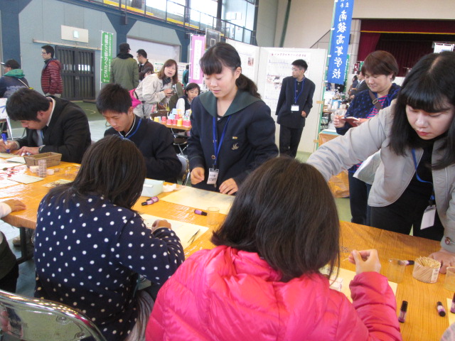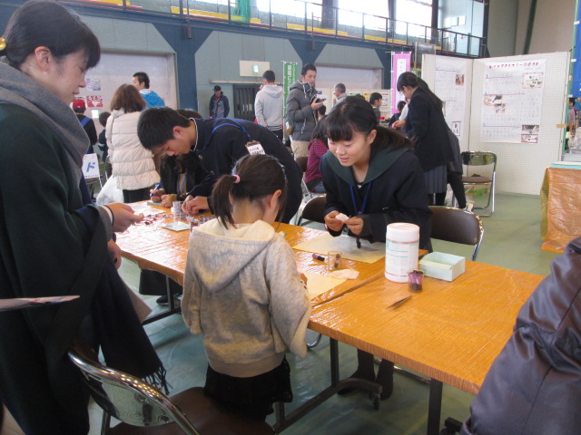 ・サイテク祭2016多良木町 その2 (2016/12/4) 投稿日時 : 2016/12/04 学校サイト管理者 ・サイテク祭2016多良木町 その2 (2016/12/4) 12月4日(日)多良木町町民体育館で行われました、「サイテク祭2016」に参加しました。「声コプターをつくろう」、「LEDライトでアクセサリーをつくろう」、「南稜の農産物販売」を出品しました。 2年生産科学科の明石君、2年園芸科学科の椎葉さん、津崎さん、西さん、秋山さん、尾前さん、1年生産科学科・園芸科学科の早田君、宮崎さん、伊藤さん、1年普通科総合コースの井川さん、今村さん、犬童さん、中村君、らがスタッフとして参加しました。あいにくの小雨でしたが、体育館は盛り上がりました。