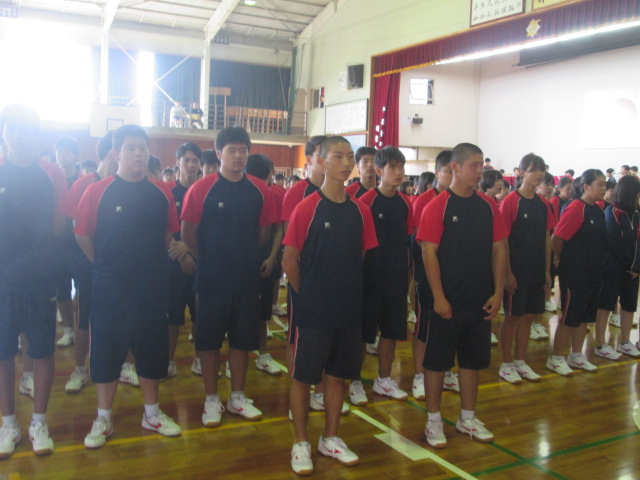 ・体育大会 予行と練習 (2018/9/27) 投稿日時 : 2018/09/27 学校サイト管理者 ・体育大会 予行と練習 (2018/9/27)9月27日(木)体育大会の予行と練習を行いました。昨晩からの雨でグランドコンディションが悪かったため、体育館での予行と練習になりました。入場行進の練習生徒会長 前田君からの話
