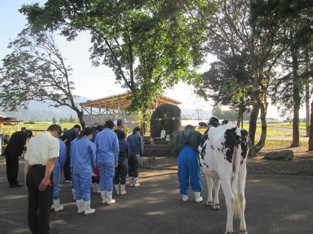 ・畜魂祭 (2016/5/17) 投稿日時 : 2016/05/17 学校サイト管理者 ・畜魂祭 (2016/5/17)5月17日(火)16:30から神殿原農場で畜魂祭を行いました。本校における畜産分野において、動植物の魂の鎮静と生徒や職員が安全に授業及び実習ができるよう祈願する目的で行いました。生徒、職員らが参加しました。
