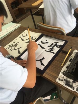 公開授業の様子 投稿日時 : 2017/06/16 学校サイト管理者 6月16日(金)の公開授業の様子です。 【地歴公民(総合農業科1年】 「法と立憲主義」についてのグループ学習です。 【書道(普通科1年)】 九成宮醴泉銘(きゅうせいきゅうれいせんめい)の書写です。 【測量(環境工学科2年】 測量機器を用いての単測法の学習です。 【プールの授業に向けて清掃活動にも頑張っています】