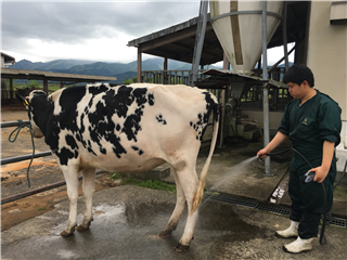 今日の”デイリークラブ” 投稿日時 : 2016/04/26 作成者1 この4月から愛好会として活動している「デイリークラブ。」 今日の放課後も神殿原農場へ足を運び、愛牛のお世話に励んでます。 牛の体を水で洗い流すことで、体をきれいに保つことやマッサージの効果があります。 でも、もっと大きな目的は、牛のと信頼関係を築くことです。 この牛は、3月8日に種付け(人工授精)し、妊娠が確認されました。 さぁー、無事にお産してくれるよう頑張るぞ!! そんな気持ちで毎日活動しています。