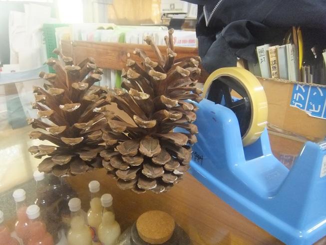 今年も大王松にたくさんの松ぼっくりがついており、よく下に大きな松ぼっくりが落ちています。当たらないように注意してください。