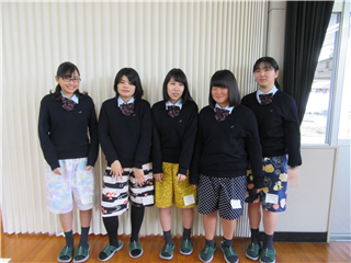 ショートパンツが完成しました☆ 投稿日時 : 2017/12/06 学校サイト管理者 12月5日(火)1年生活経営科では家庭科技術検定被服製作3級作品、ショートパンツが完成しました!完成を祝い、みんなで記念撮影をしました。合否がわかるのは冬休み明け。待ち遠しいです!【生徒の感想】・筆記テストもあり、知識の理解も深めなければなりませんでした。合格しているか不安…勉強はしました。・入学時にはできなかったことが、今は「ふつう」にできている!嬉しい!!!・縫い合わせていって、股上で二股になっていたことに感動☆・布選びからやり直したい。やっていくうちに、説明されていたことがわかった。・ファッションショーでどんな着こなしにするか、考えるのも楽しい。