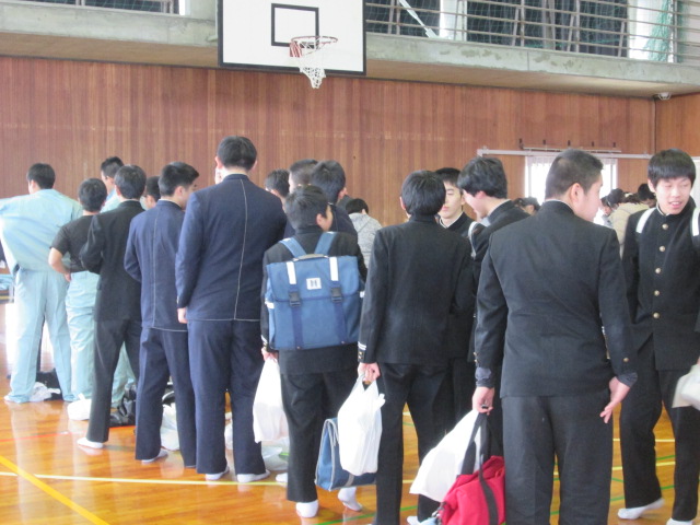 ・合格発表 (2017/3/15) 投稿日時 : 2017/03/15 学校サイト管理者 ・合格発表 (2017/3/15)3月15日(水)9時、合格発表を行いました。その後、体育館で制服、実習服、グラウンドシューズ、体育館シューズ、長靴の採寸や、芸術教科選択科目(音楽、書道)調査書を配布を行いました。【合格者説明会】 3月27日(月)9時から、合格者説明会を行います。 保護者同伴でご出席をお願いします。上履きをご持参ください。