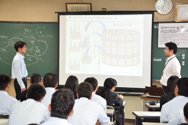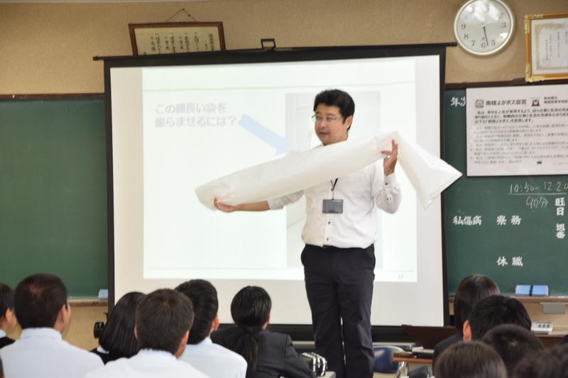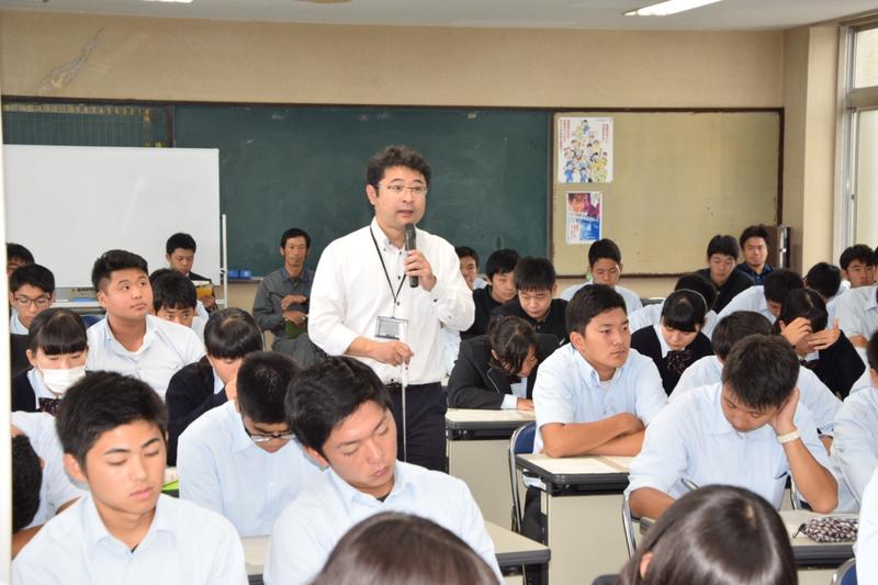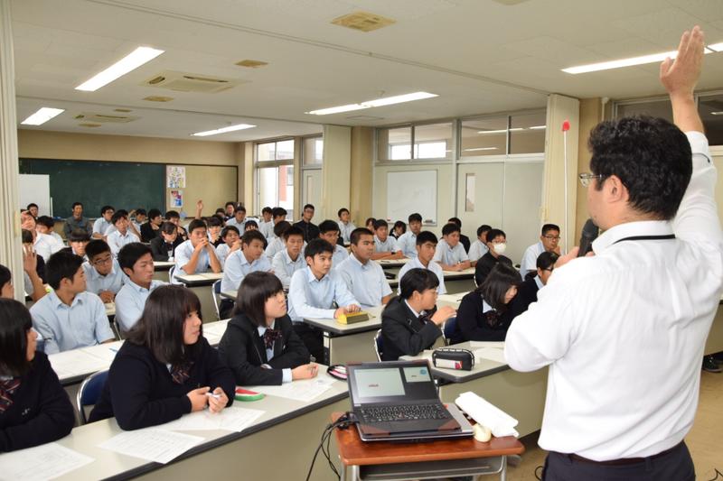 知的財産に関する学習 投稿日時 : 2019/10/21 学校サイト管理者 10月21日、山口大学研究推進機構知的財産センターから特命准教授の陣内先生をお招きし、知的財産教育について講義をしていただきました。 「知的財産」という言葉を初めて聞く生徒もいましたが、わかりやすい例や話を通じて理解を深めることができました。