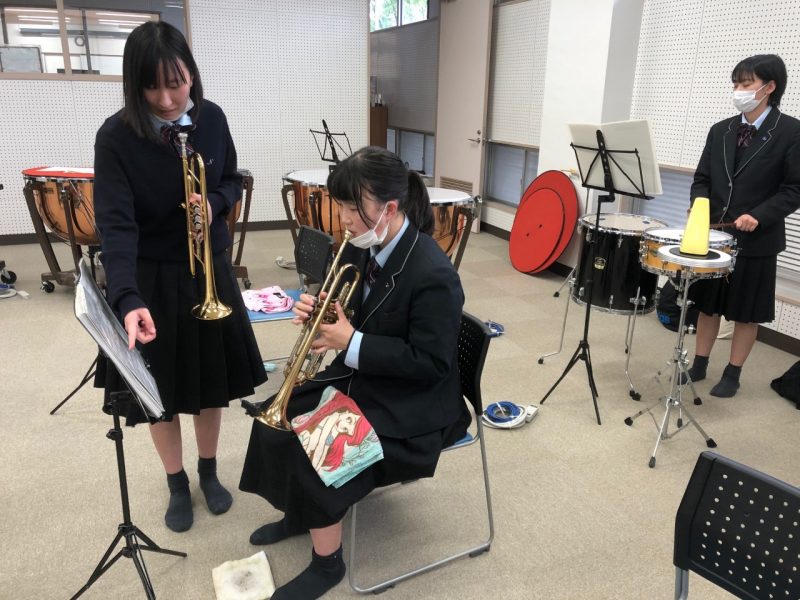 吹奏楽コンクールに向けて! 投稿日時 : 2021/04/28 投稿者6 吹奏楽部では、7月に開催される熊本県吹奏楽コンクールに向けて練習に励んでいます。 今年の自由曲は、福田洋介作曲「瑞祥の調べ」という“和”のテイストを感じさせる曲を選びました。 日本情緒を表現できるよう練習ガンバリマス!!